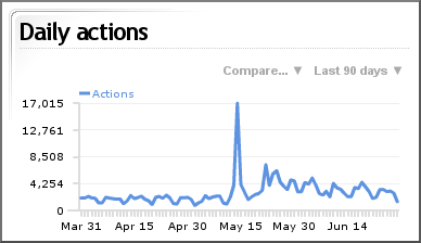 The traffic spike below came from adding one carefully-planned page to a site that was initially at about 80 to 100 visitors per day: