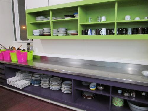 Having cabinet doors can make a kitchen look very tidy at first glance, but many hostels I spoke to deliberately kept open cabinets. They found the doors were simply covering up a mess. Without doors, guests are less likely to hide dirty dishes and staff can spot left behind food and other items easier. One hostel doing this was Downtown Backpackers in Wellington: