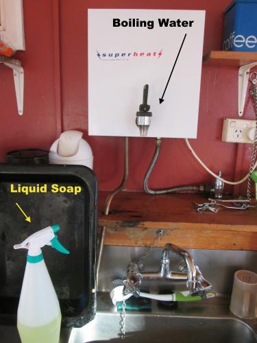 Instant boiling water taps give convenience to guests while easing the congestion of people in the kitchen waiting on water to boil. I saw this at many hostels as well, including at Paradiso in Nelson, who also had the soap in spray bottles: